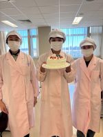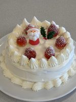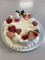 いちごとクリームを使って自由にデコレーションをすることで、創作の楽しみを味わうことができたと思います。皆が世界に一つだけの素敵なクリスマスケーキを完成しました。この応用調理学実習(2)で身につけた調理技術と知識を活かして、世界に一つだけのオリジナリティのある料理を考案できる実践力の高い栄養士を目指して欲しいと思います。